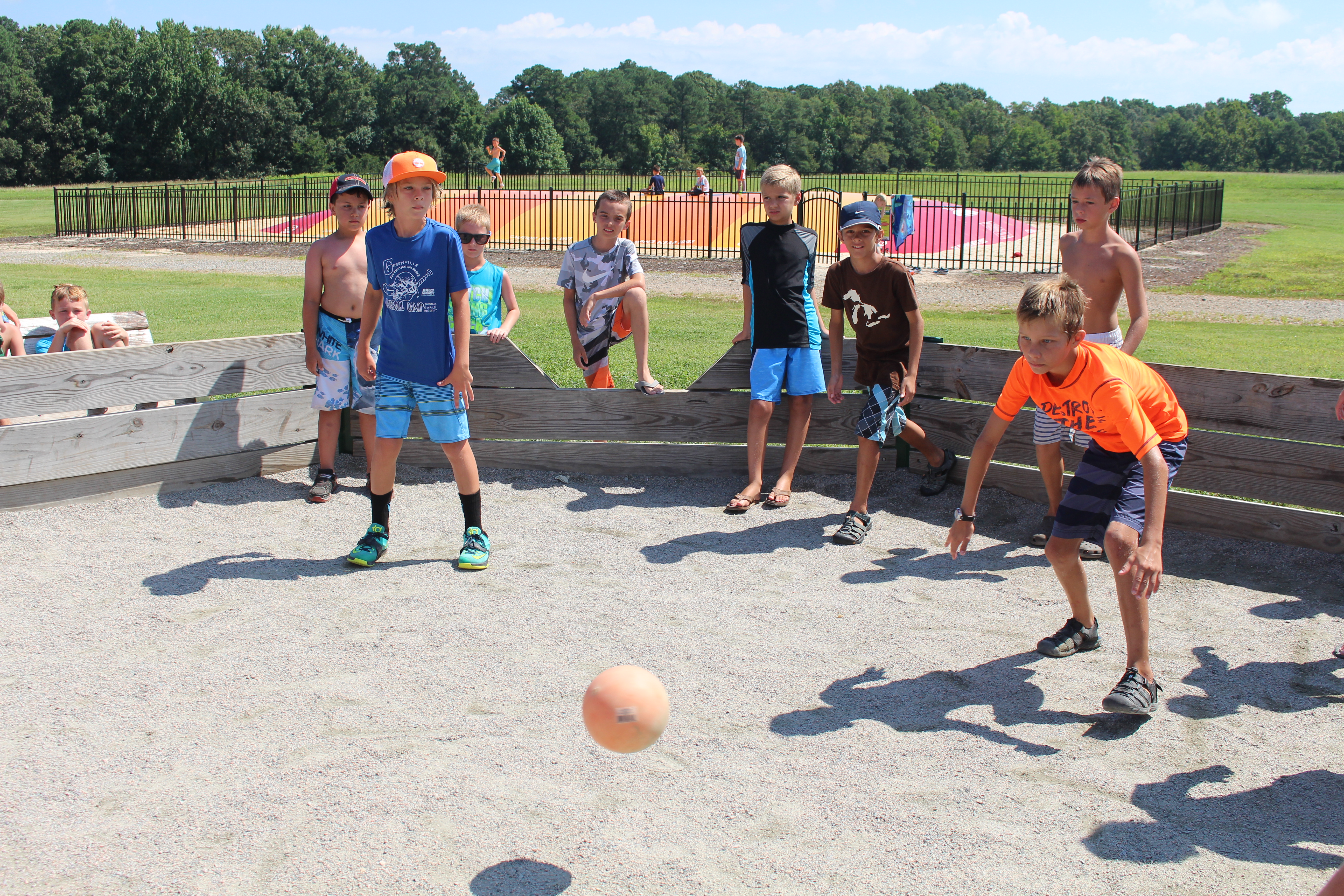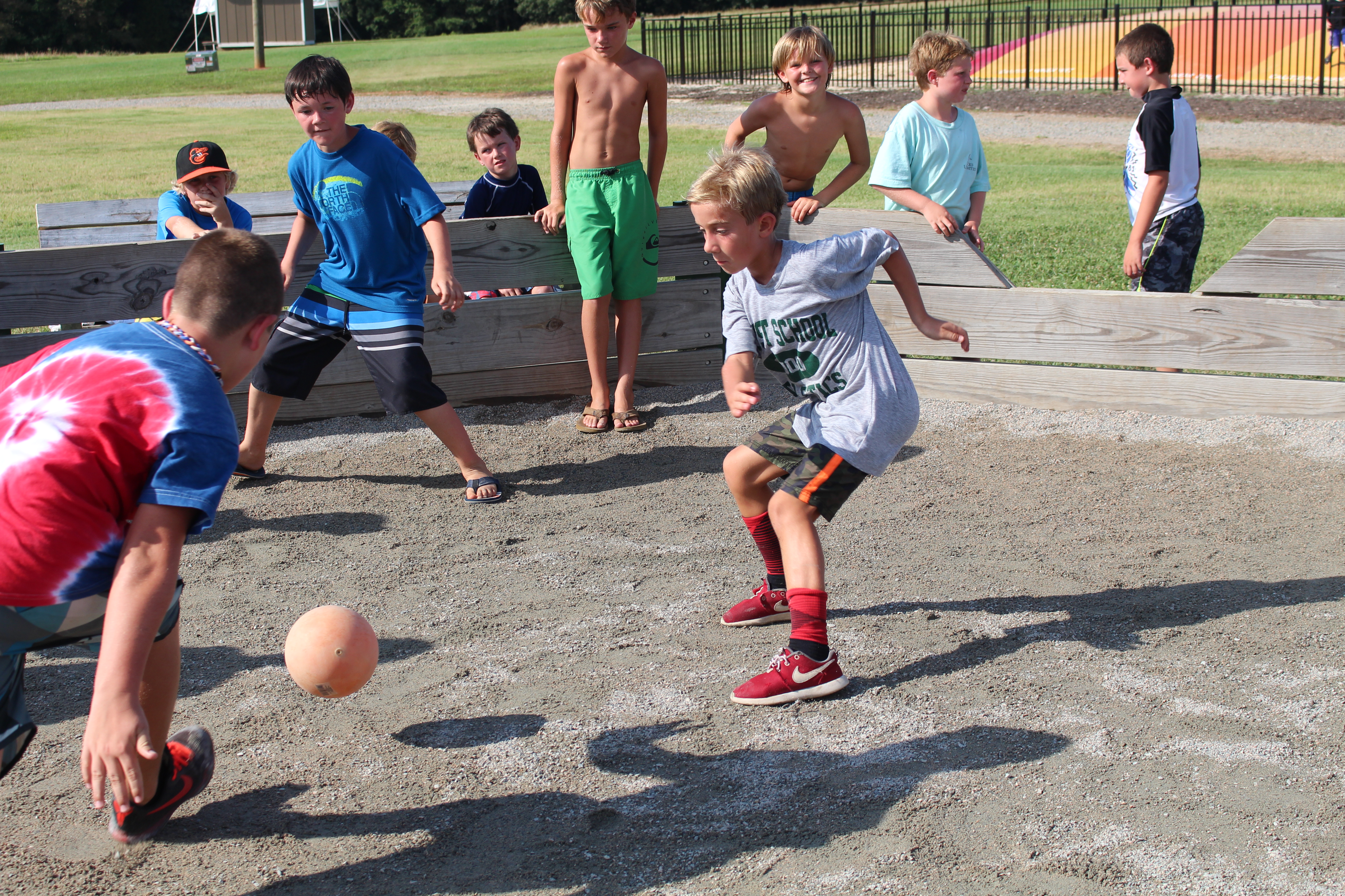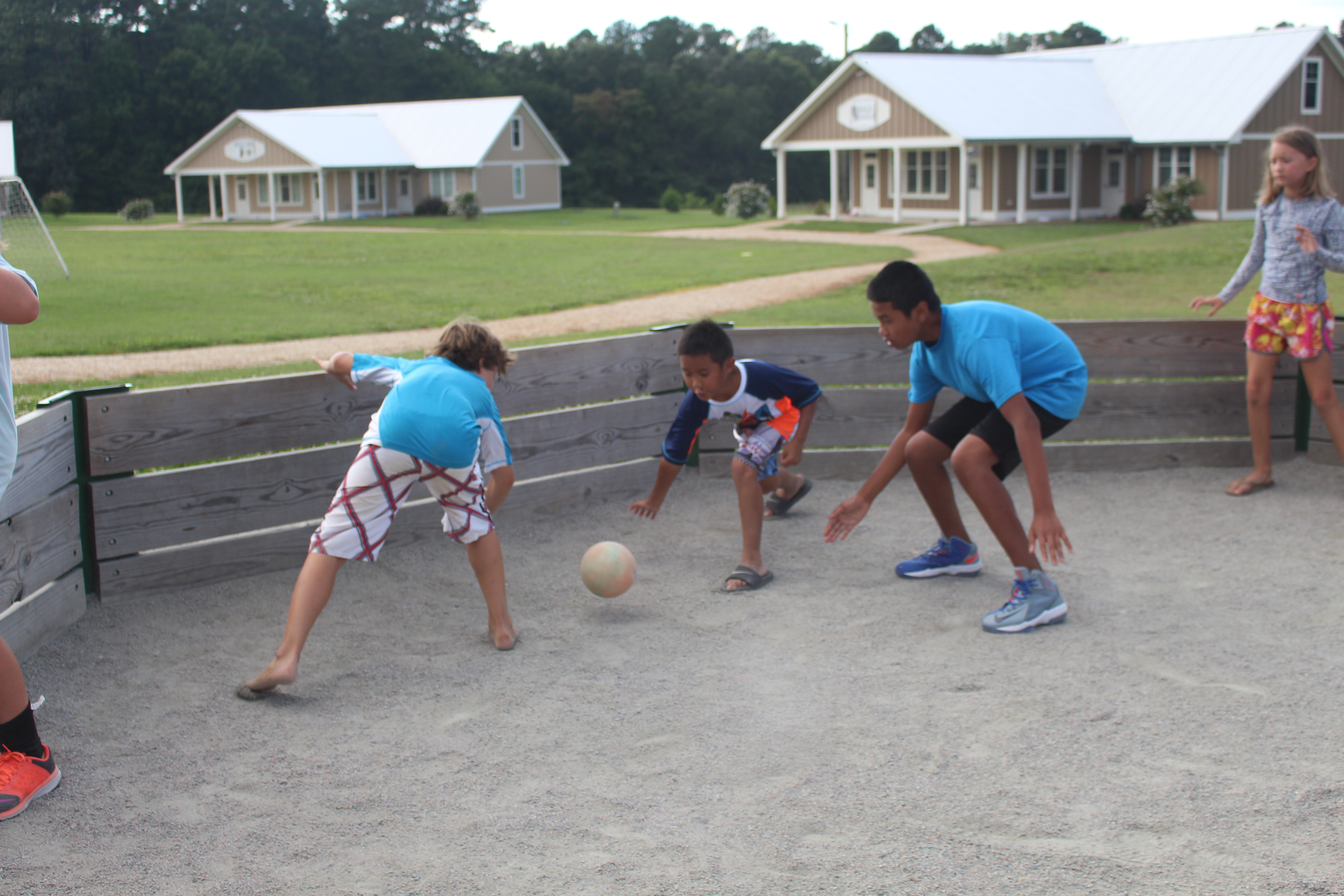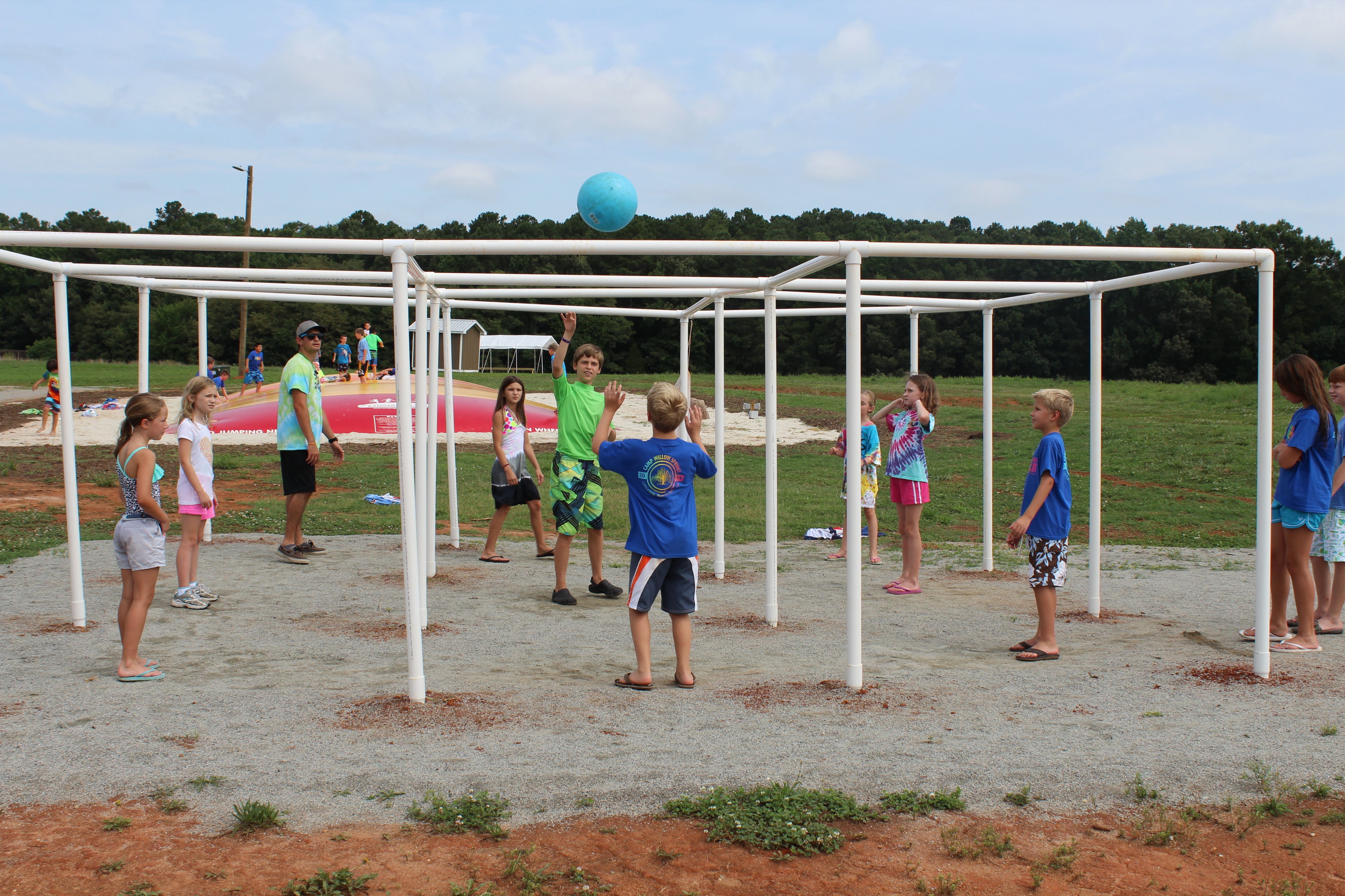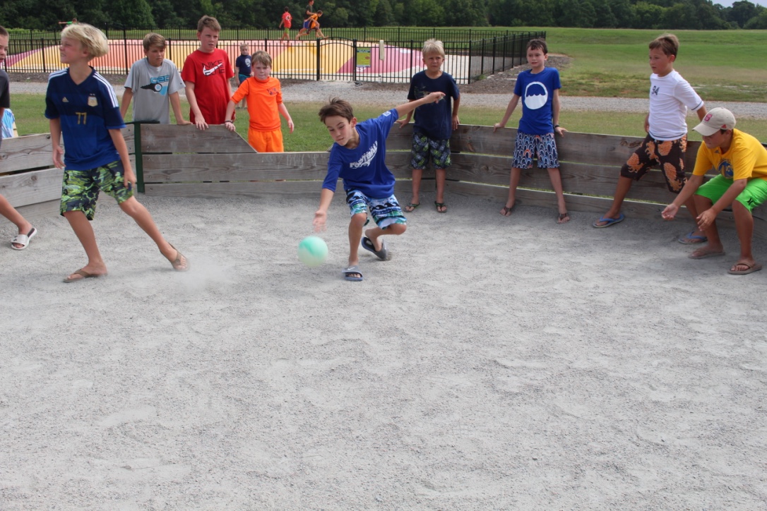 This game incorporates the rules of four square and adds several twists! Campers of all ages will enjoy trying to become, and remain the king.