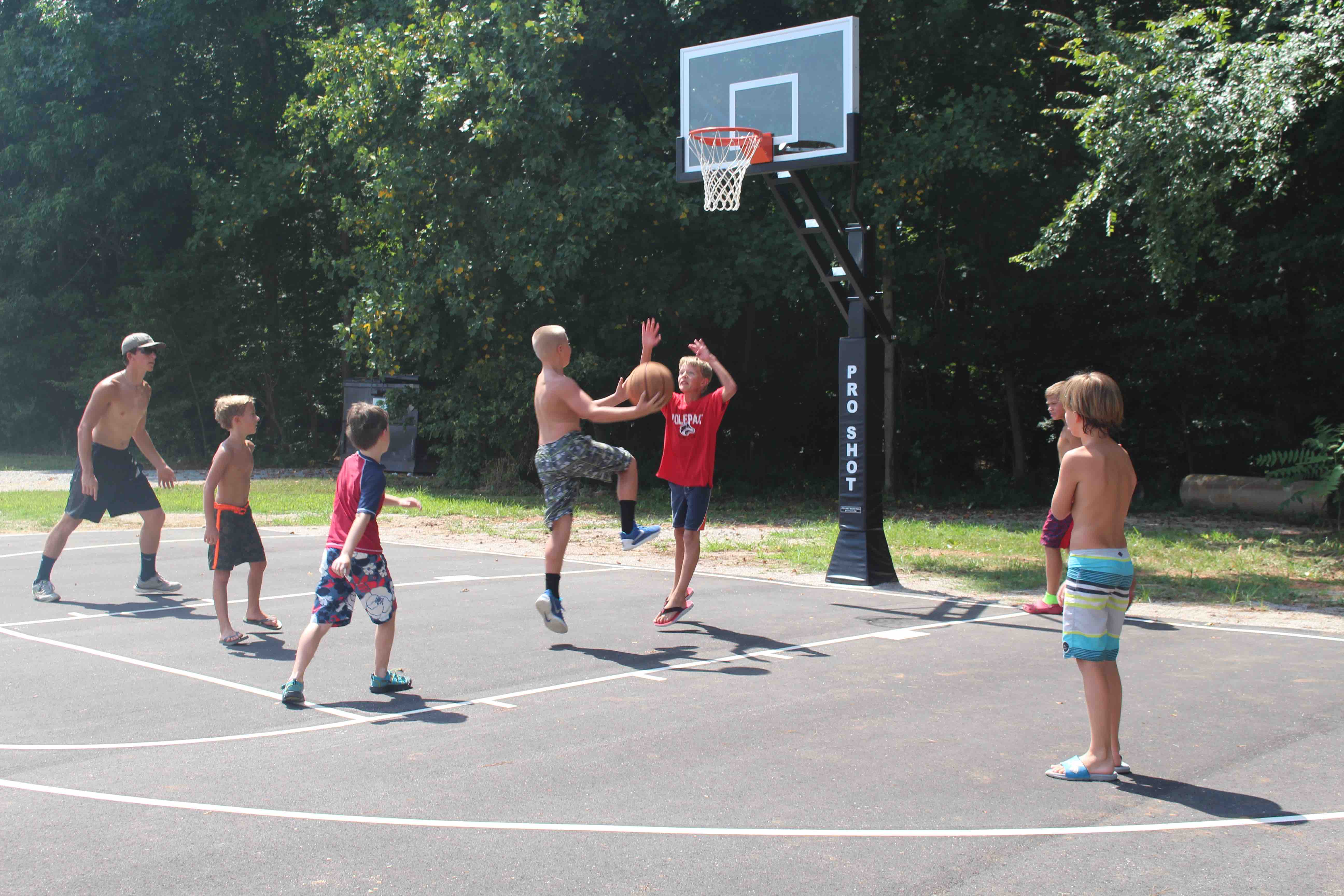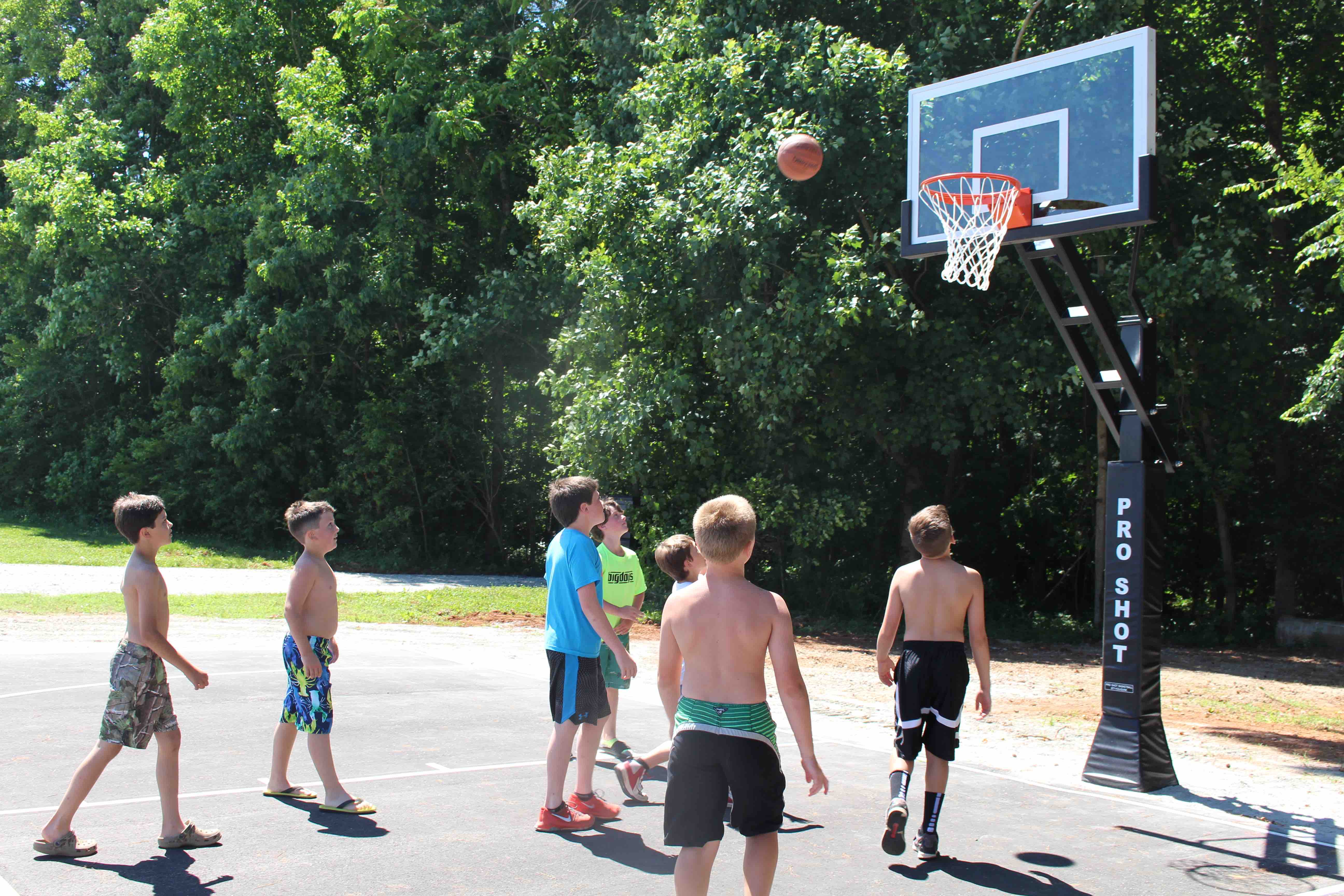 Our outdoor basketball court is a great place to play a competitive game or just shoot around with your friends.
