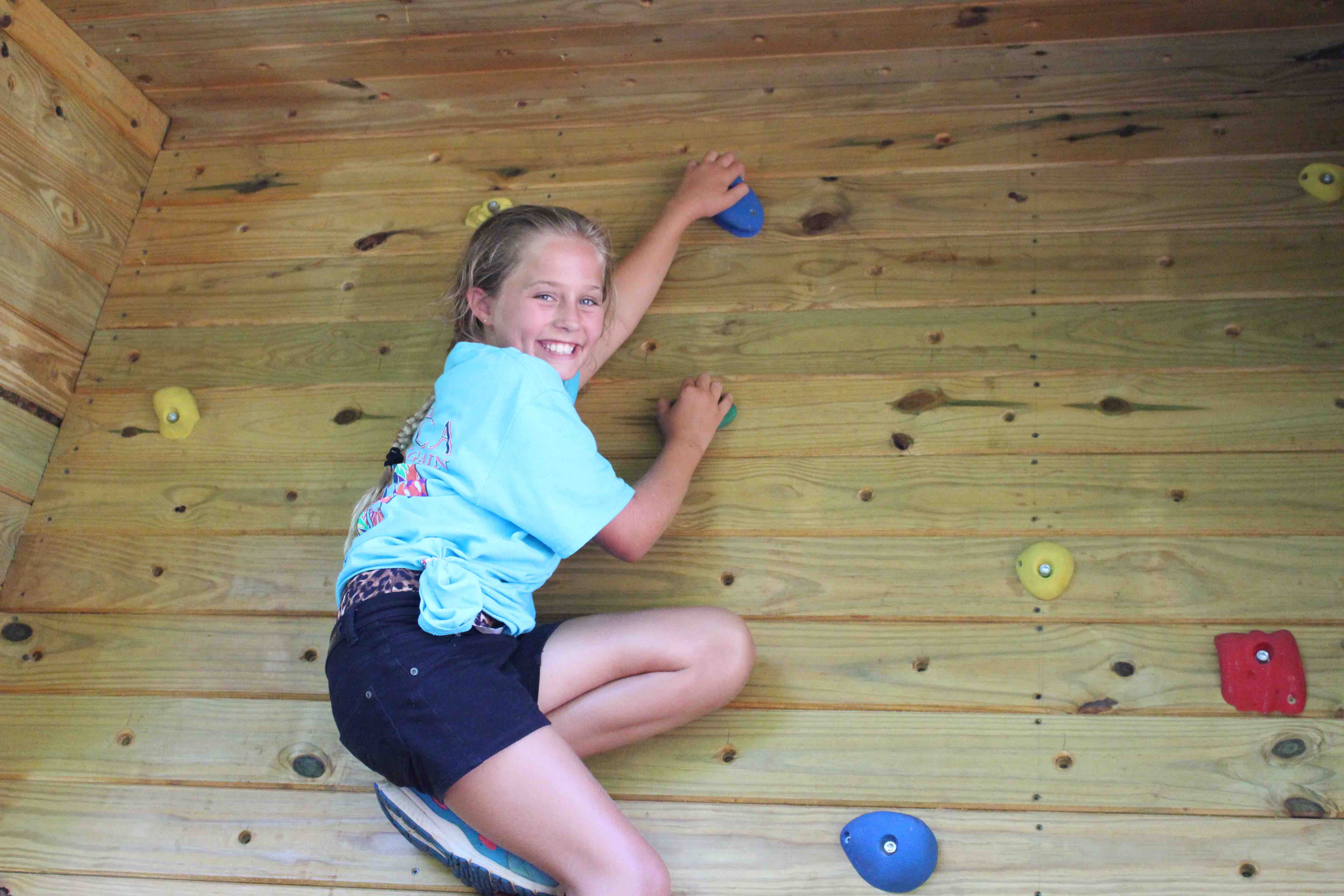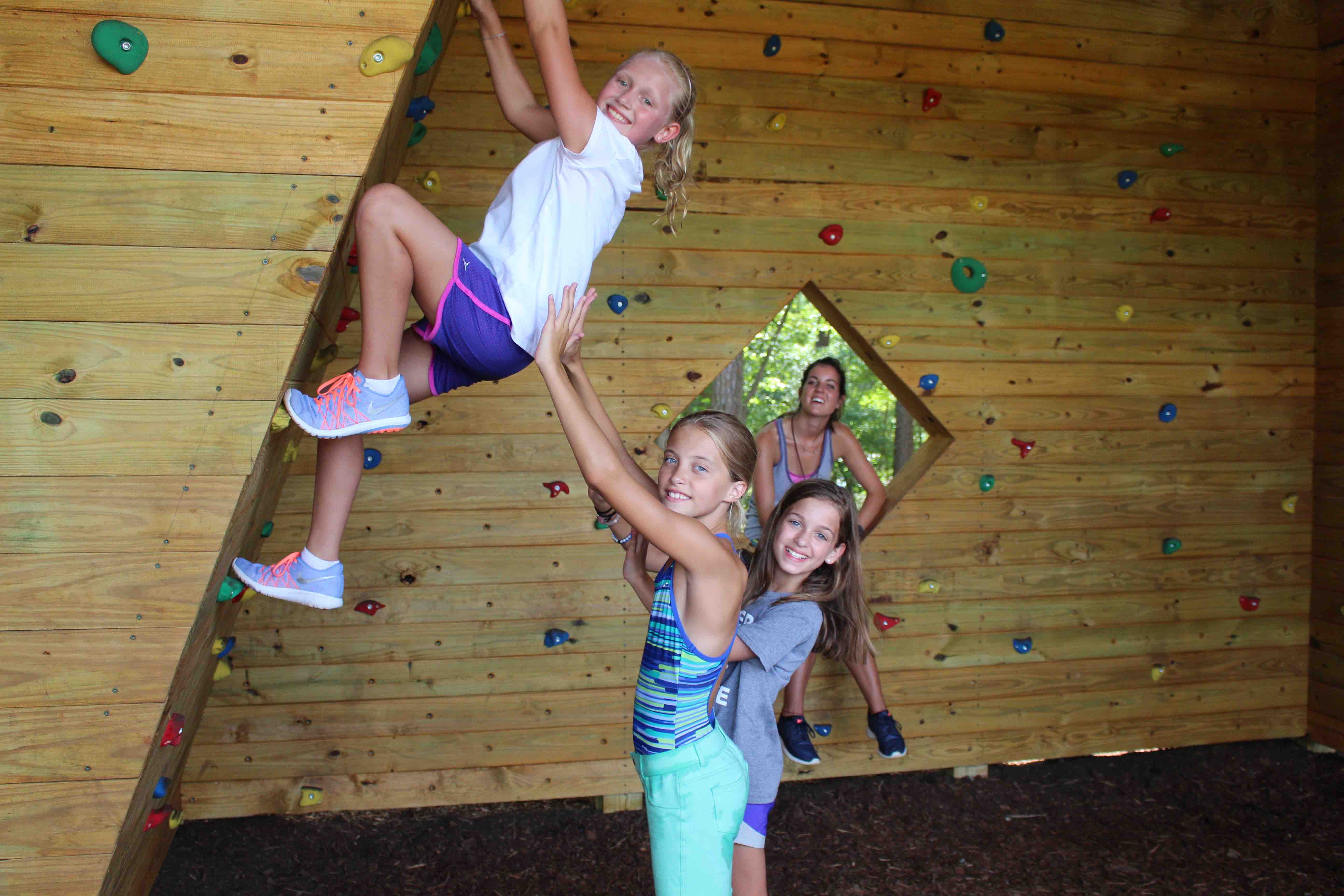 This climbing structure provides a challenge for climbers of all skill levels.  Our trained staff will teach each camper the fundamentals of climbing as they climb horizontally throughout the grotto.  Each person can choose their own level of difficulty and set their own goals.