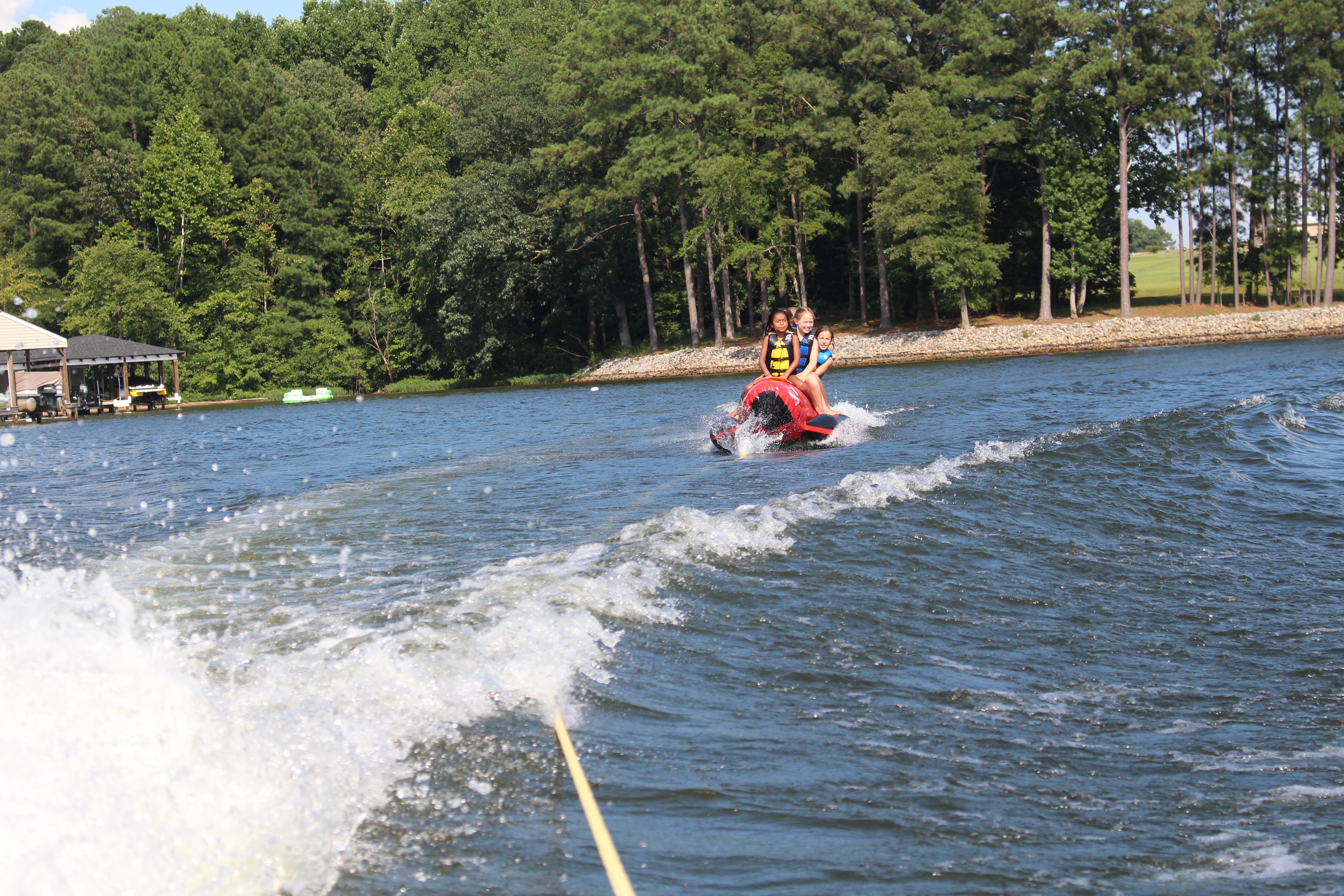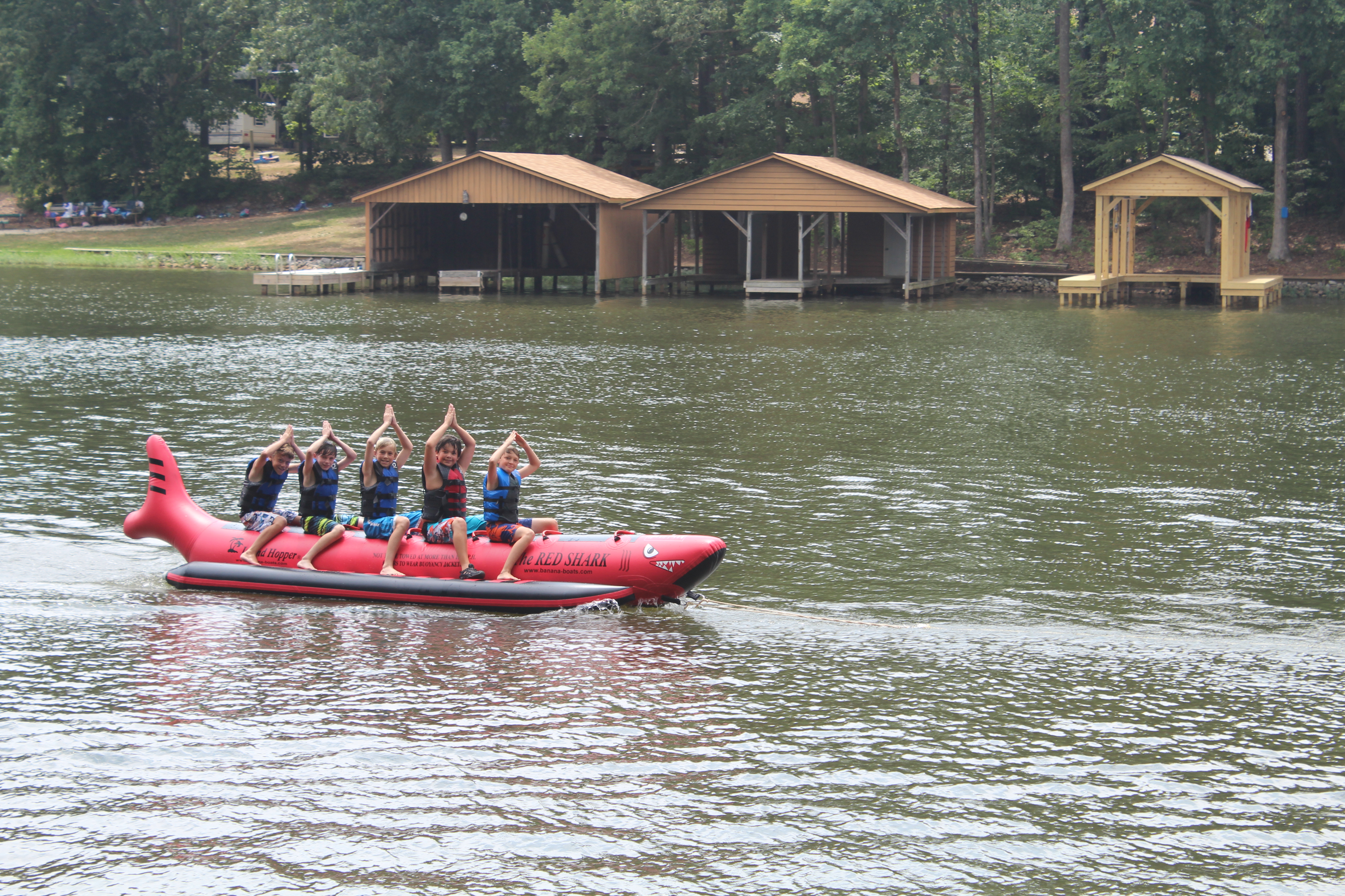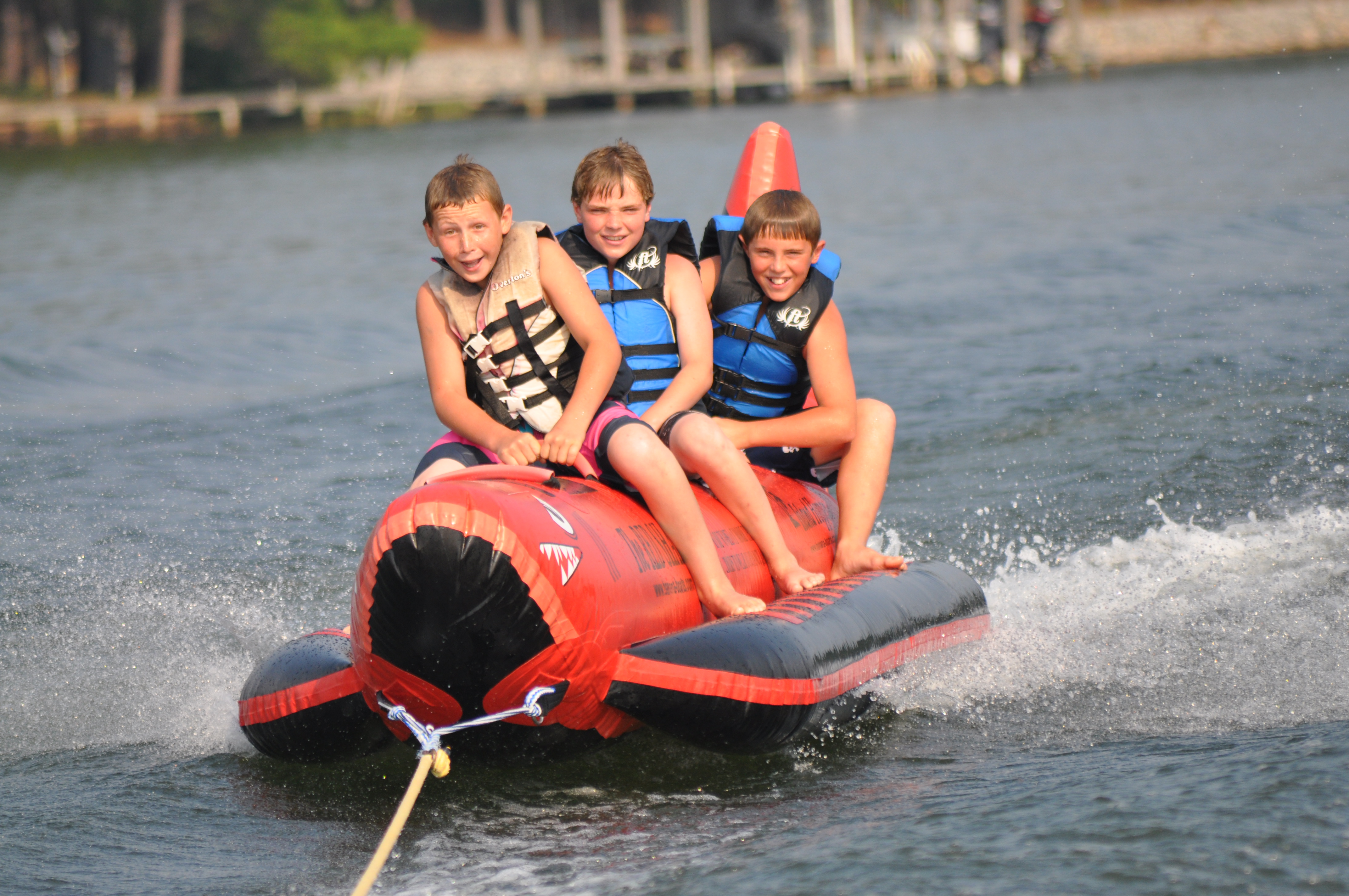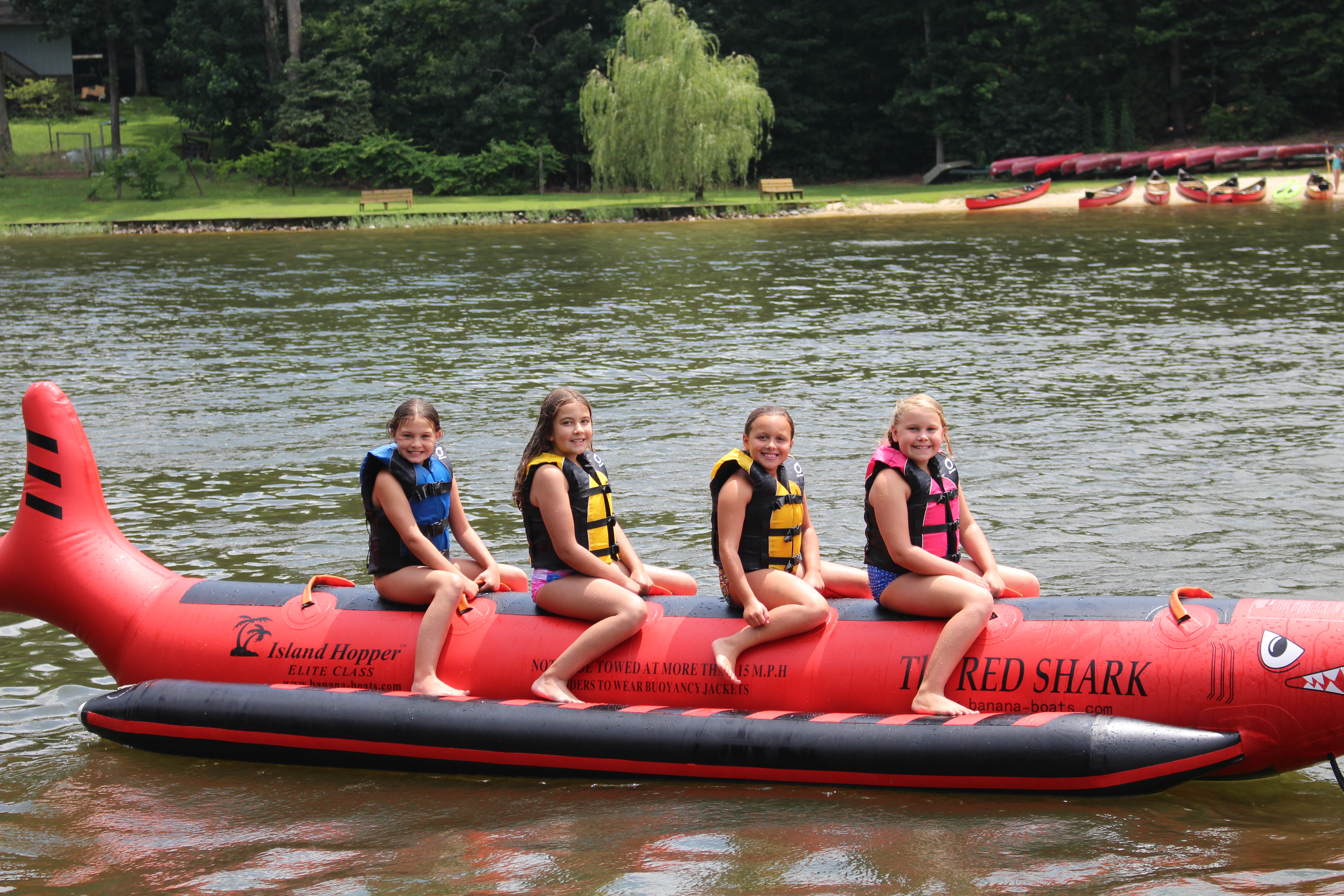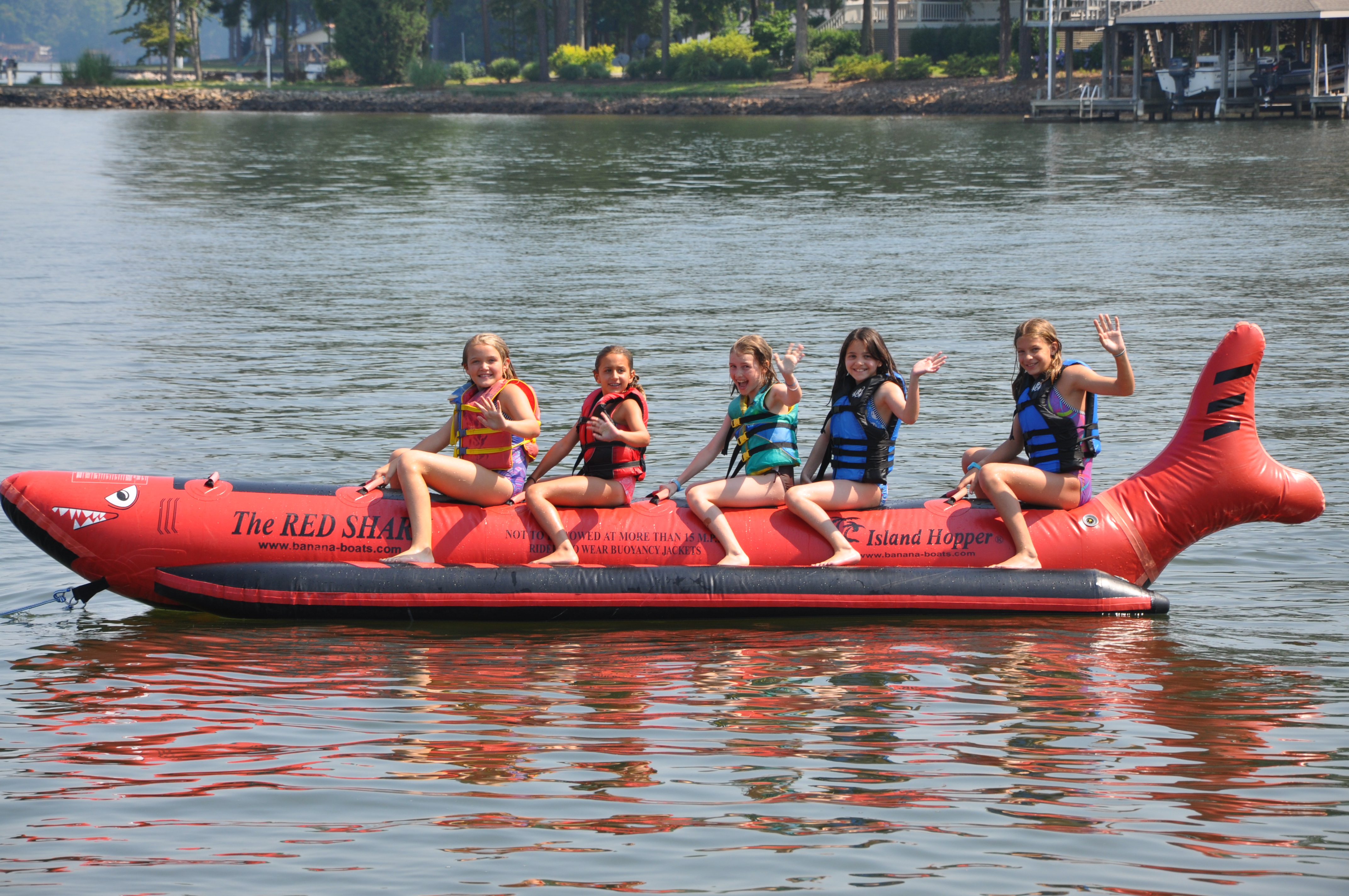 The Red Shark is a favorite for many CWS campers.  This towable is pulled behind one of our ski boats and will seat 4 or 5 riders at a time.  Each camper will have the opportunity to ride the Red Shark with campers from his or her dorm.  Year after year this exhilarating ride leaves all campers wanting more!
