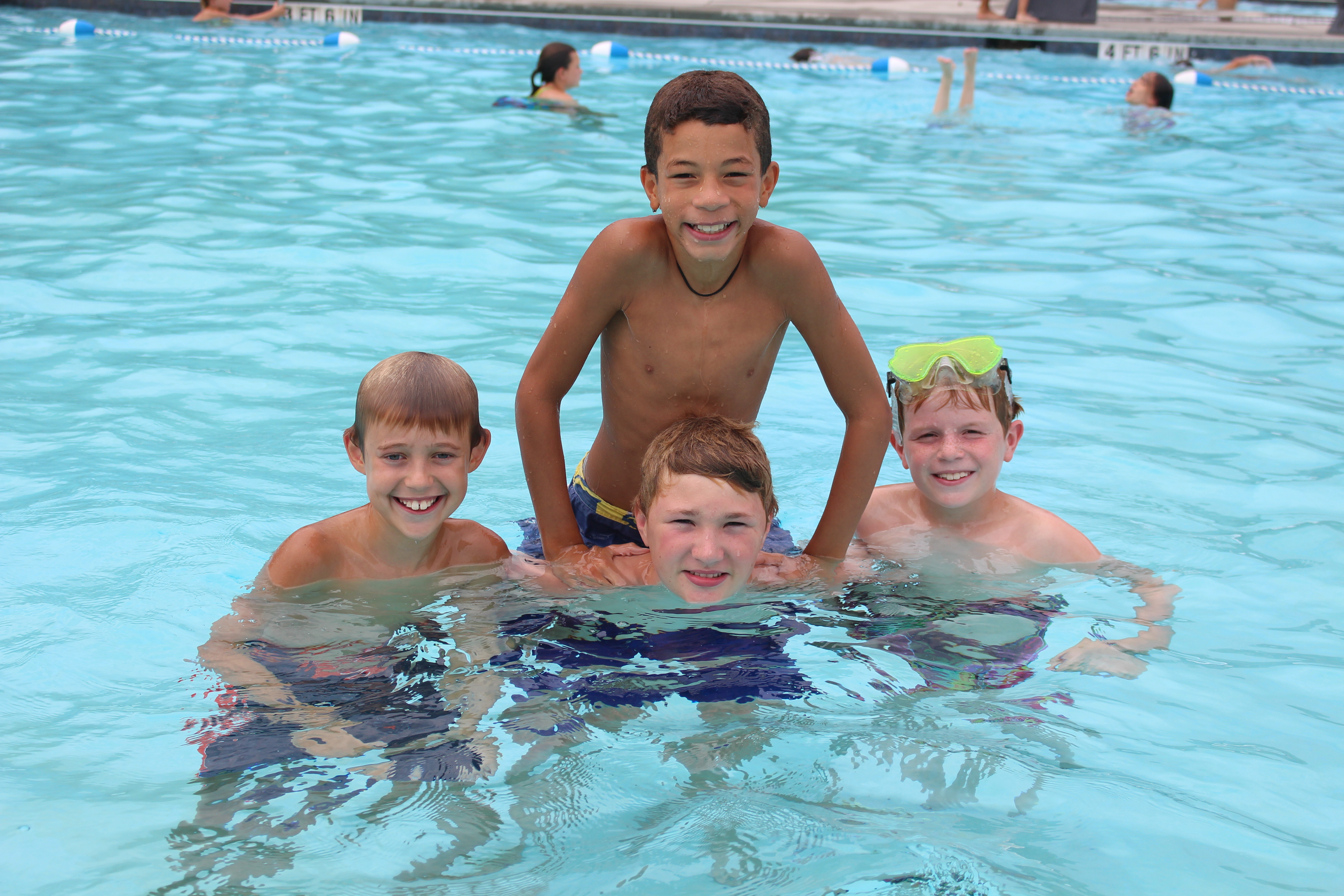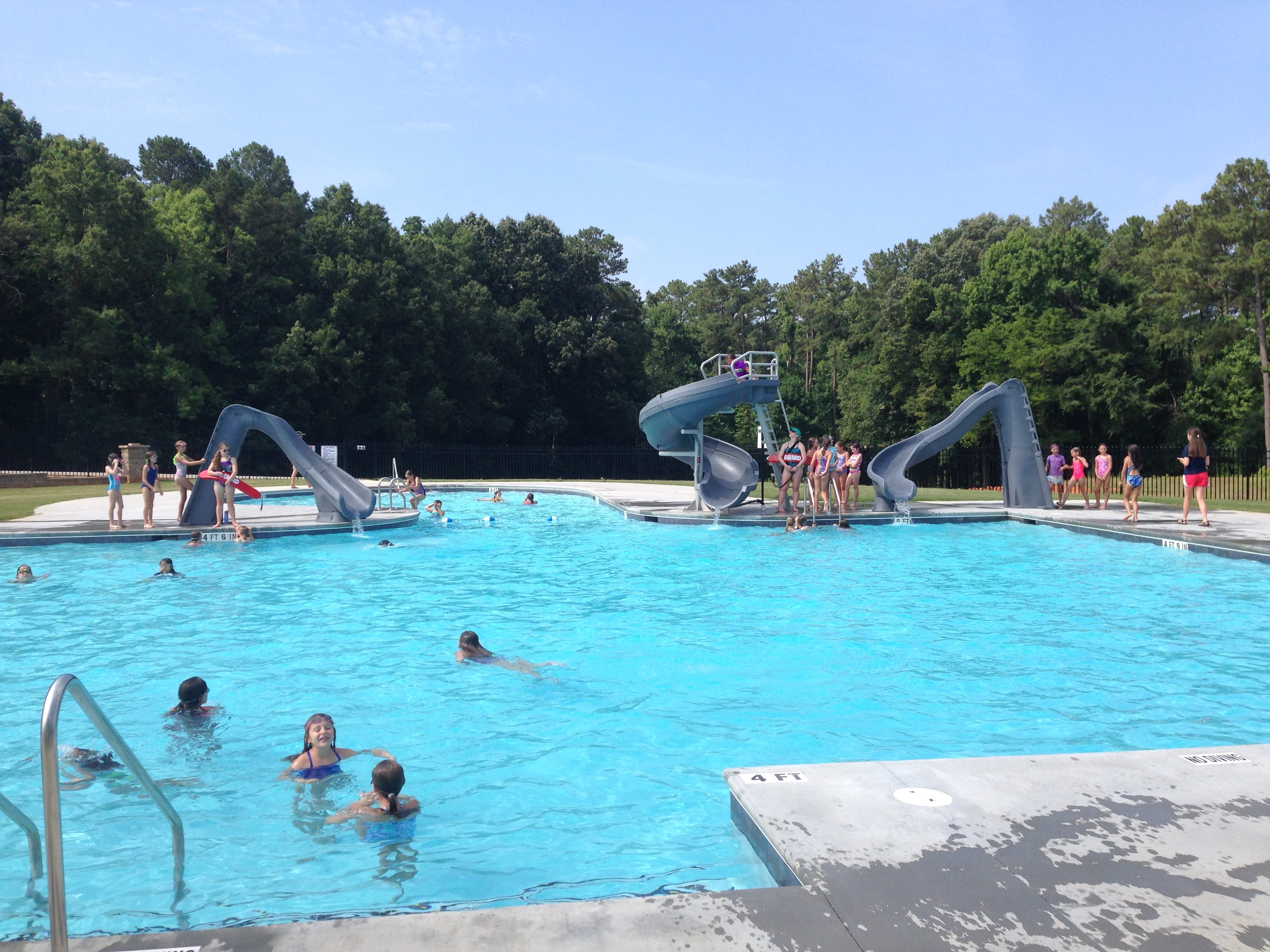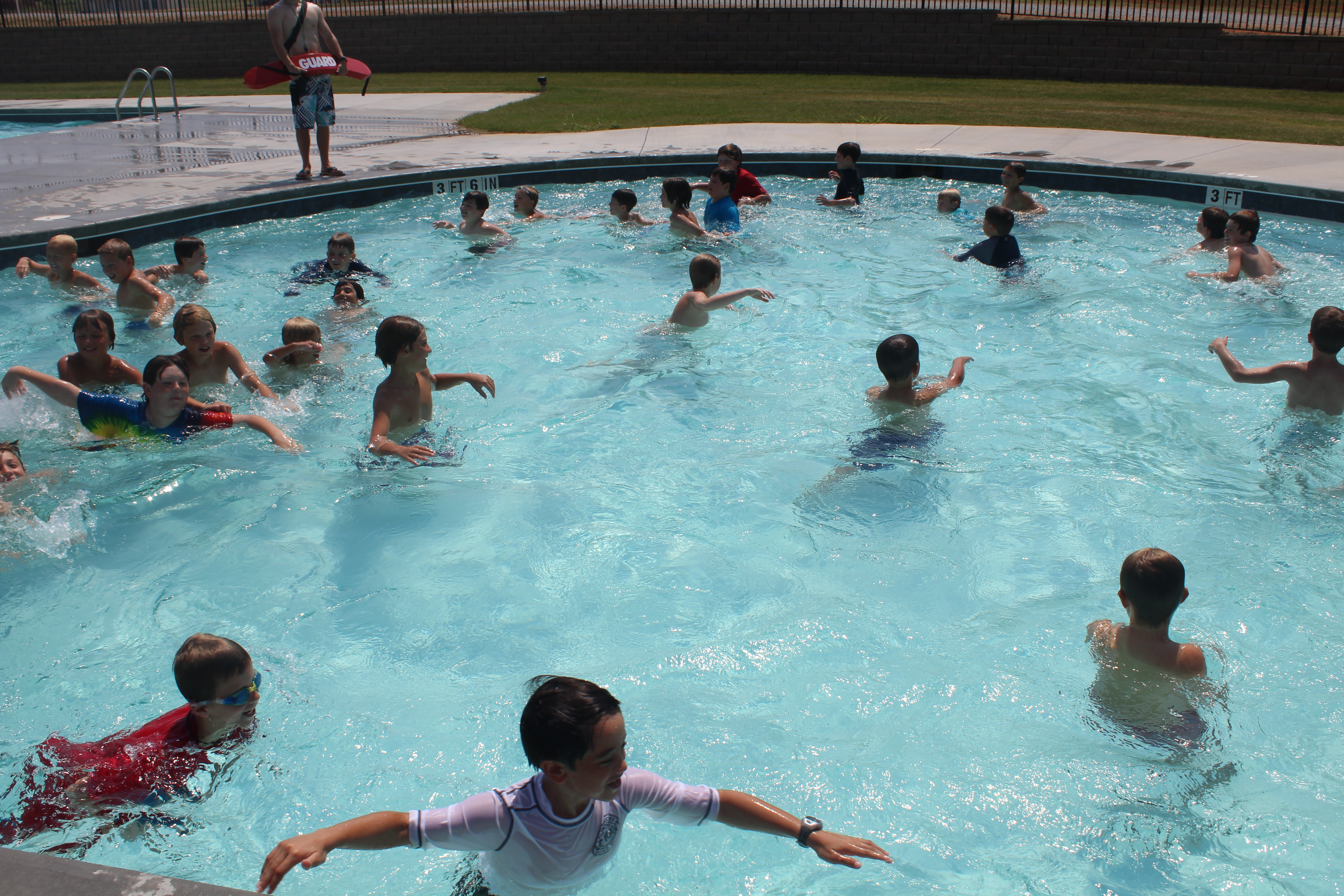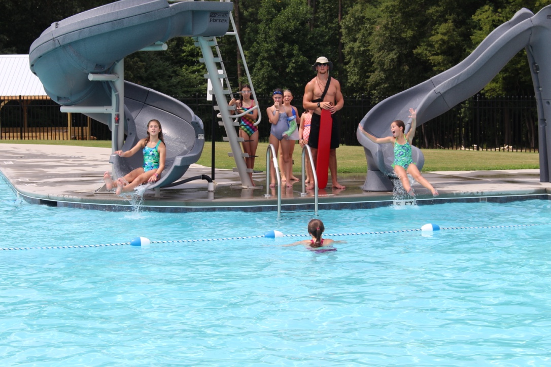 Campers will find that swimming is a large part of our recreation program.  Basic swimming stroke skills will be taught.  There is also ample time to play water games and free swim with your friends.  Each camper will have multiple times to swim each day. Our swimming pool has multiple water slides and a maximum depth of 5 feet. Lifeguards are on duty at all designated swimming times.